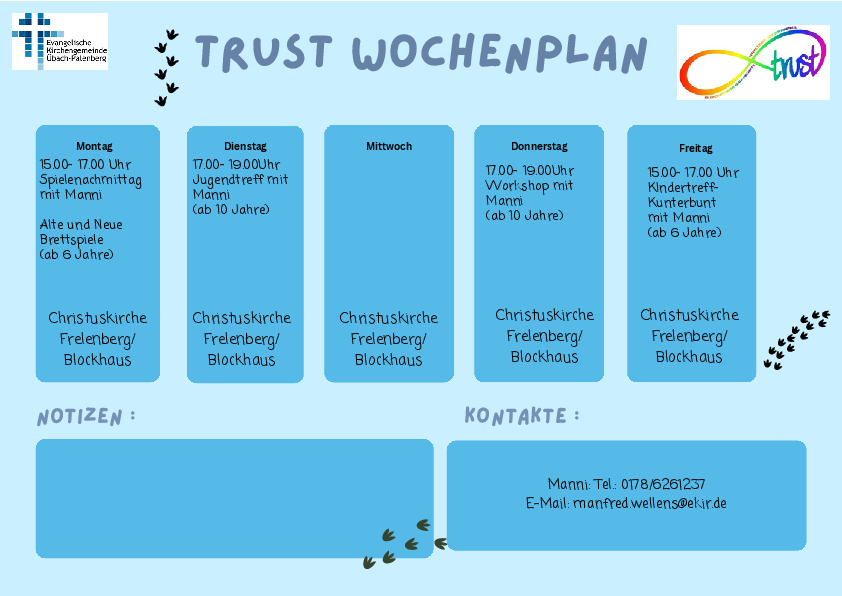Aktueller Trust Wochenplan für den Bereich Frelenberg.